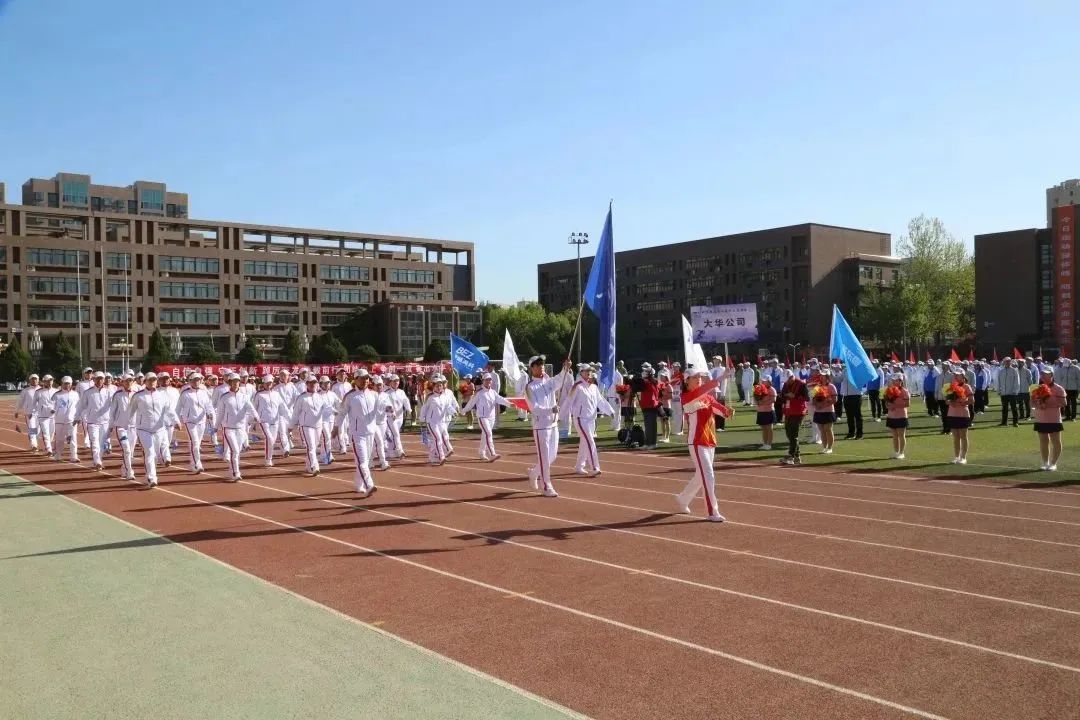 大華冠晨纓,步步龍虎行;甲子又五載,深藏身與名。伴隨著鏗鏘律動(dòng)的運(yùn)動(dòng)員進(jìn)行曲,由36人組成的大華方隊(duì),身著紅白相間的運(yùn)動(dòng)服,齊聲高喊“堅(jiān)韌執(zhí)著、團(tuán)結(jié)協(xié)作、追求卓越、共創(chuàng)未來”的口號(hào),揮舞著藍(lán)色的司旗,精神抖擻地走過大會(huì)主席臺(tái)。
