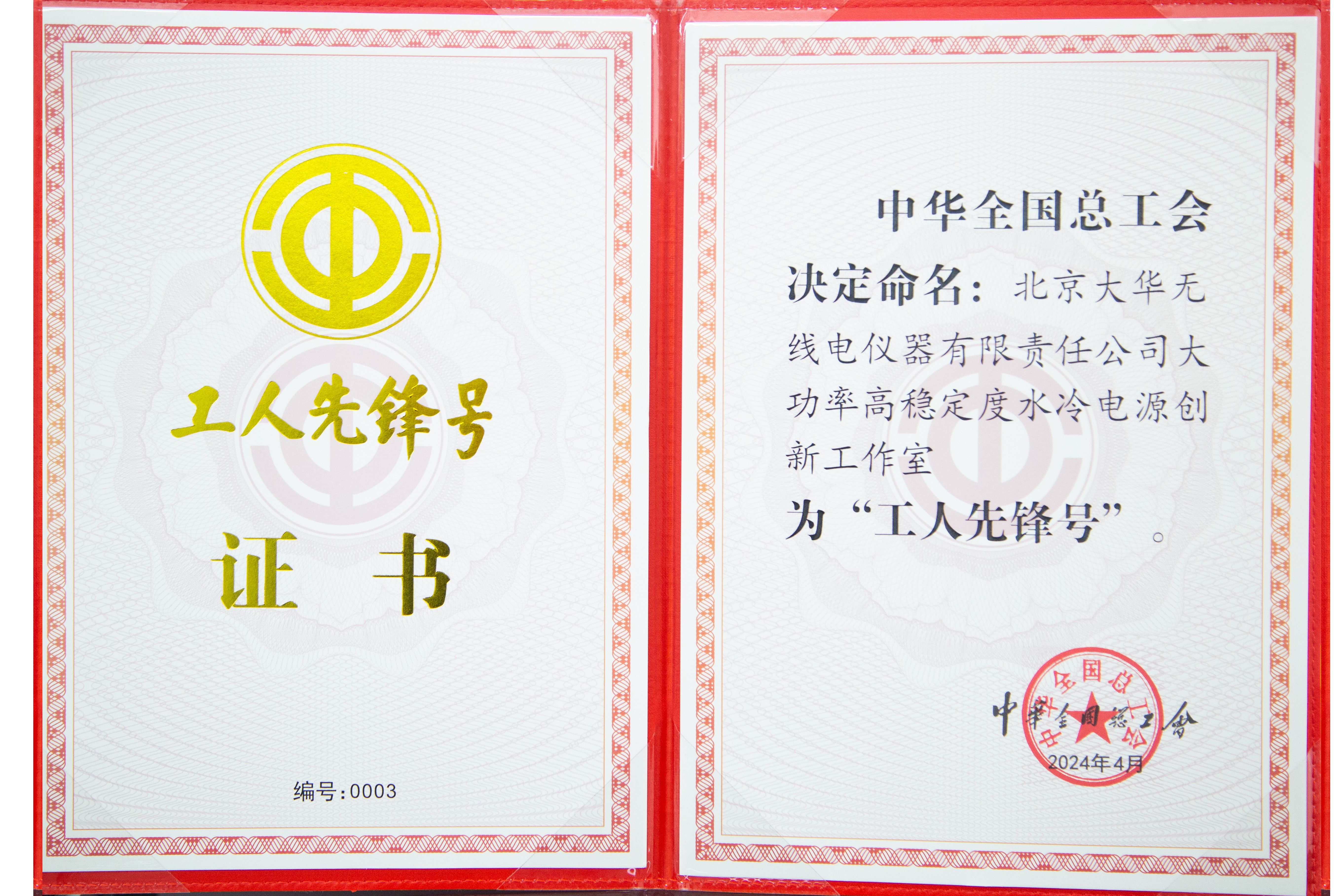 4月28日上午,2024年慶祝“五一”國際勞動節(jié)暨全國五一勞動獎和全國工人先鋒號表彰大會在北京人民大會堂隆重舉行,大華公司大功率高穩(wěn)定度水冷電源創(chuàng)新工作室喜獲“2024年全國工人先鋒號”榮譽稱號。