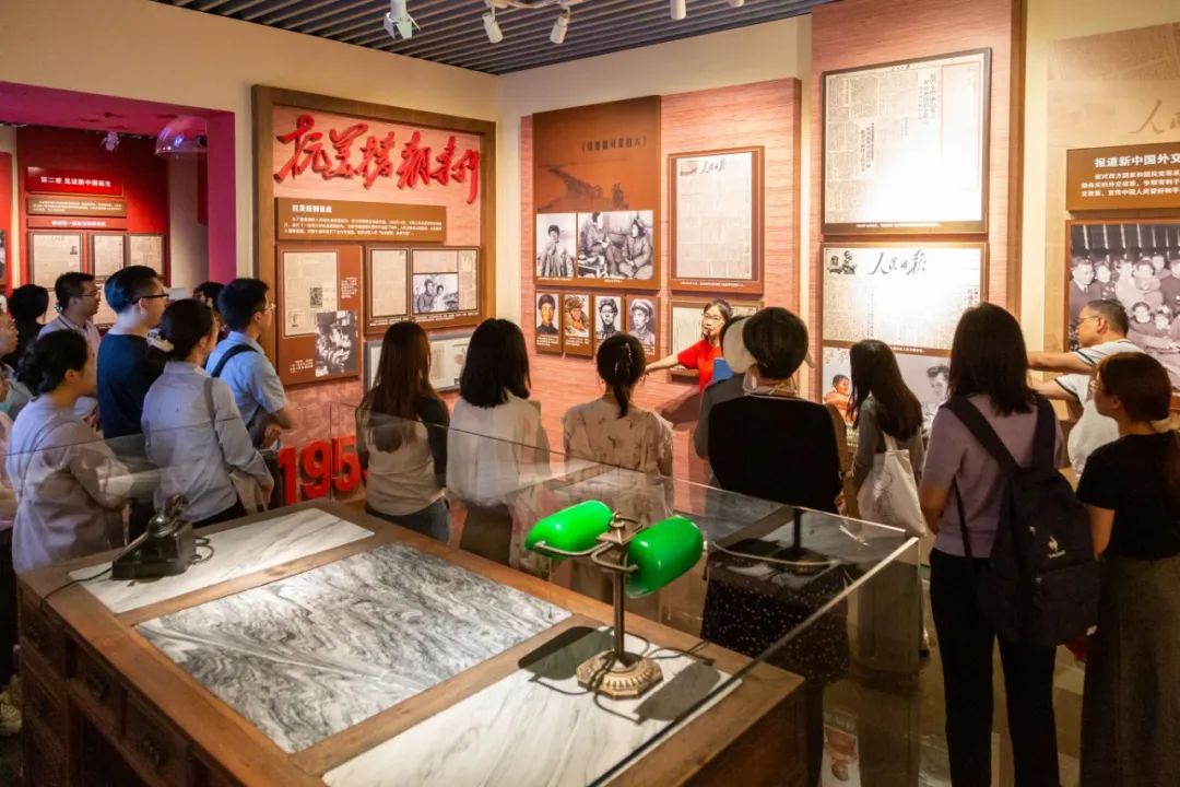 隨后,大家來到了人民日報(bào)社史館。社史館由序廳、中共中央機(jī)關(guān)報(bào)的歷史沿革、解放前夕的人民日報(bào)、記錄中華民族站起來的奮斗歷程、見證中華民族富起來的偉大實(shí)踐、書寫中華民族強(qiáng)起來的恢弘篇章等六個(gè)展廳構(gòu)成,忠實(shí)記錄了人民日報(bào)在炮火中誕生,在硝煙中成長,經(jīng)歷一個(gè)由小到大、由弱到強(qiáng)、由地方性報(bào)紙到全國性大黨報(bào)的艱苦創(chuàng)業(yè)、忘我奉獻(xiàn)與輝煌發(fā)展史,特殊的奮斗歷程包含著黨中央的正確決策,也展示人民日報(bào)面向未來發(fā)展的憧憬與夢想。